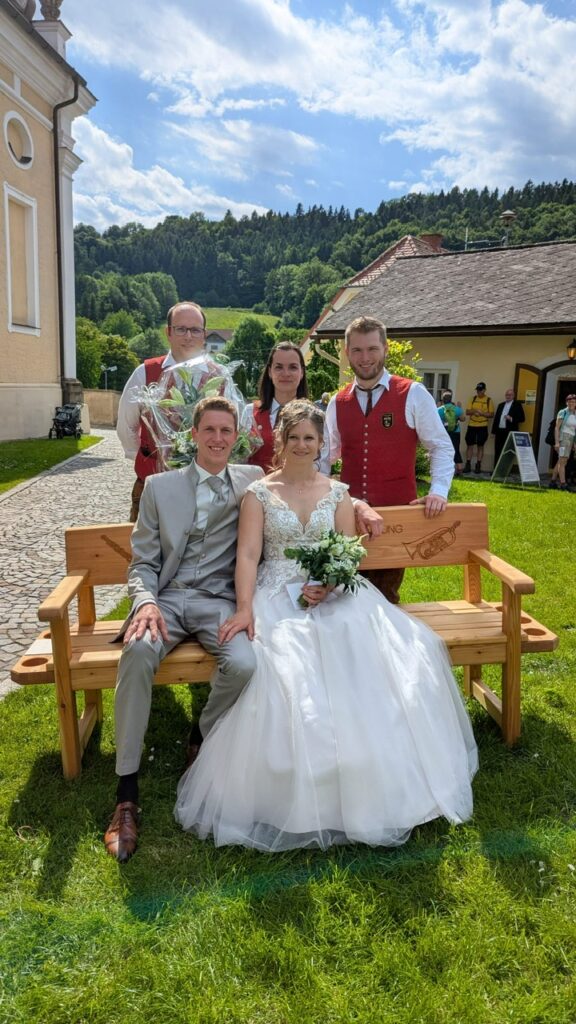 Im Juni durften wir bei einem ganz besonderen Moment dabei sein: Die MMK Pinggau hatte die große Ehre, die Hochzeit unserer Kapellmeisterin Birgit und unseres Obmann-Stellvertreters Andi musikalisch zu umrahmen.